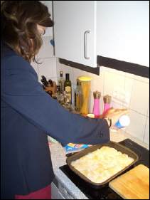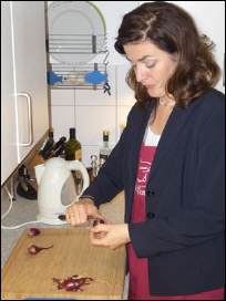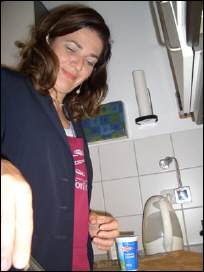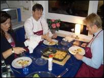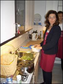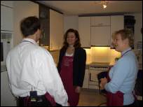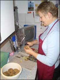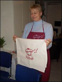 Das Kochen ging Frau Krone flink von der Hand. Sehr interessante Infor- mationen rund um Personalmanagement sowie die Digitalisierung von Landkarten für die Nutzung Navigationssoftware flossen in die Kommunikation über das Zubereiten der Mahlzeit ein - und es schmeckte ausgeezeichnet. Die TonTöpfler bedanken sich mit dem TonTopf-Geschirrtuch! |