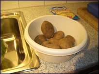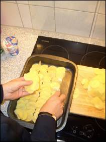Karoffeln schälen, kochen und in dünne Scheiben für das Gratin schneiden, ... |