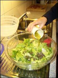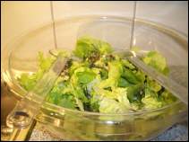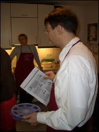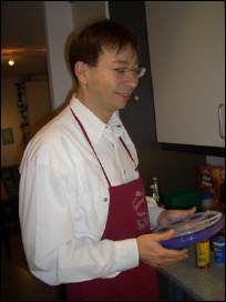 Rainer braucht diesmal keine Zwiebeln schneiden. Da freut er sich! Als Salatschleuderer machte er sich auch sehr gut. |