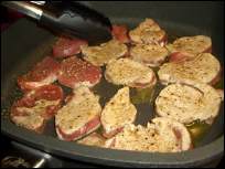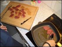 Ruckzuck wird das Fleisch mit einer Schmandsoße umgeben, während das mit Käse überbackenes Kartoffelgratain auch inzwischen fertig ist. |
