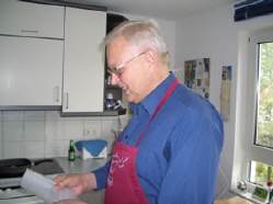 Neugierig und erwartungs- voll späht Rainer in den Korb gefüllt mit den Zutaten. "Und wo ist das Mai-Urbock?" |