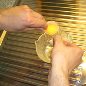 Hat gut geklaptt! Schon liegt das Eigelb auf Mehl für den Teig. |