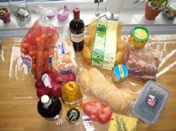 Die geschnittenen roten Zwiebeln und die vorbereiteten Kartoffeln sehen schon in rohem Zustand farblich gut aus. |